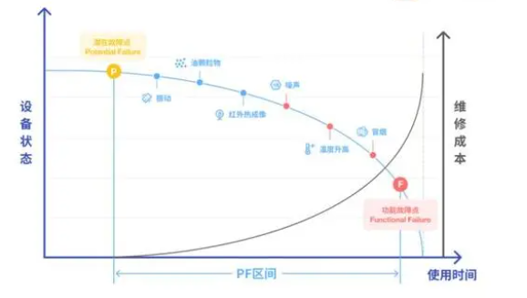 根據(jù)設(shè)備劣化趨勢(shì)P-F曲線我們可以知道,振動(dòng)信號(hào)監(jiān)測(cè)是狀態(tài)監(jiān)測(cè)過(guò)程中可以被快速捕捉并廣泛應(yīng)用的手段,通過(guò)對(duì)振動(dòng)進(jìn)行監(jiān)測(cè)和分析,可以及早發(fā)現(xiàn)問(wèn)題并采取適當(dāng)?shù)拇胧┻M(jìn)行維修和保養(yǎng),以確保設(shè)備的穩(wěn)定性和可靠性。